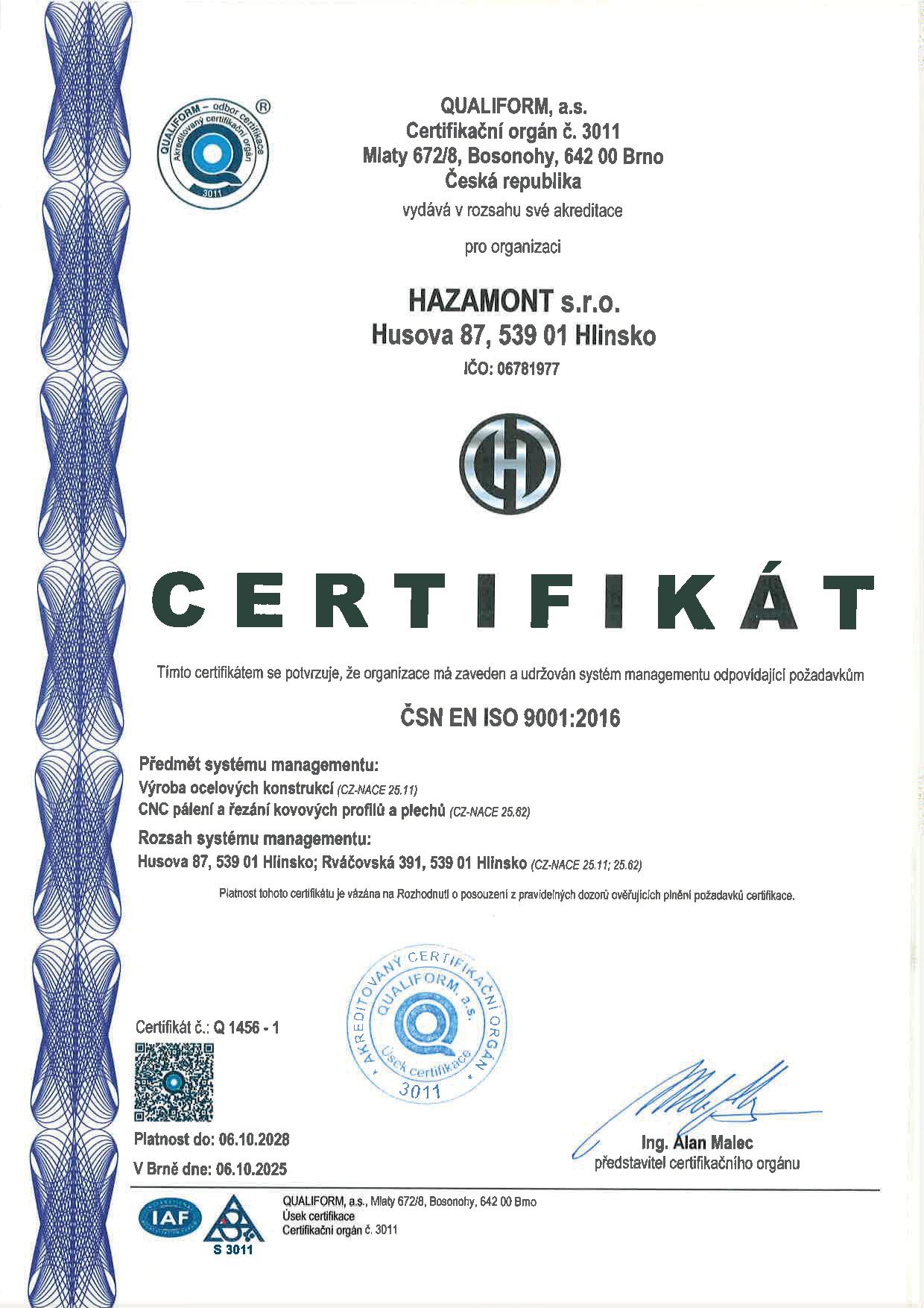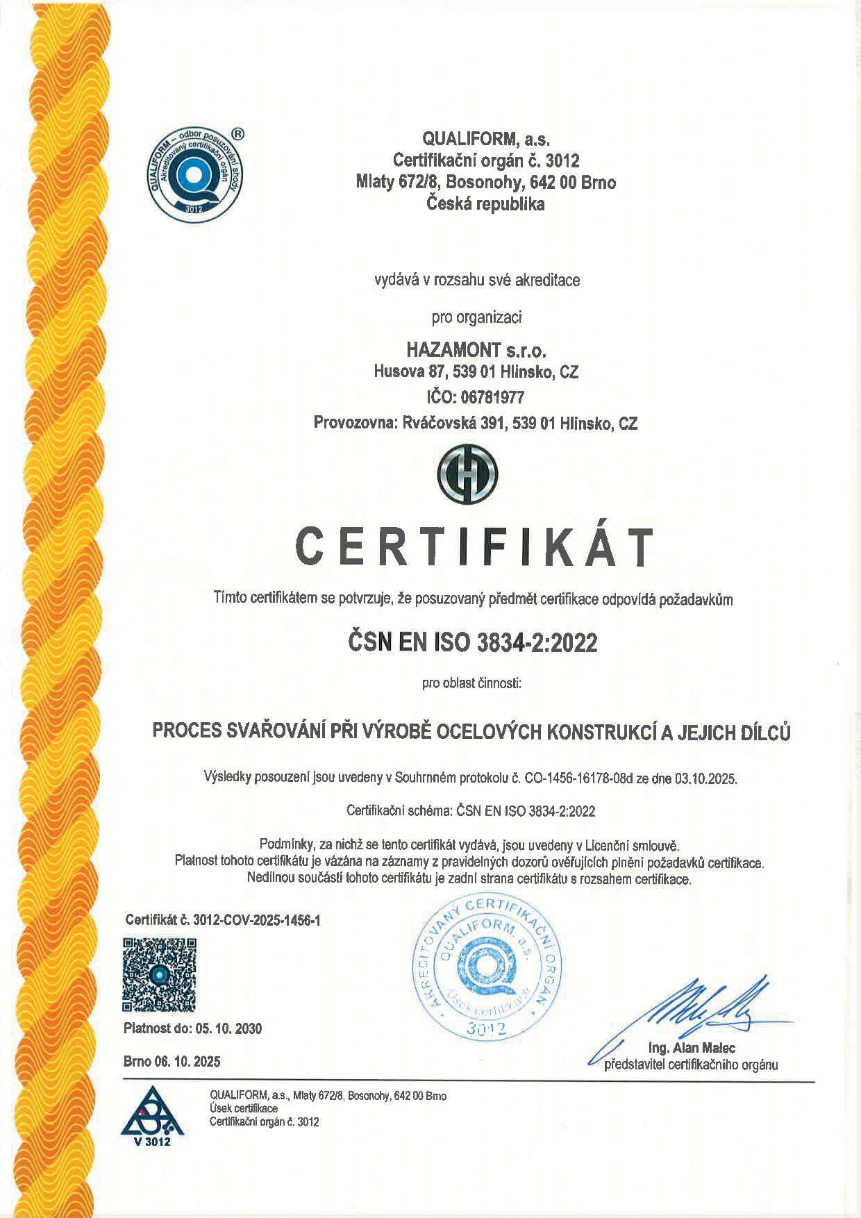 CERTIFIKACE ISO 9001 / ISO 3834-2